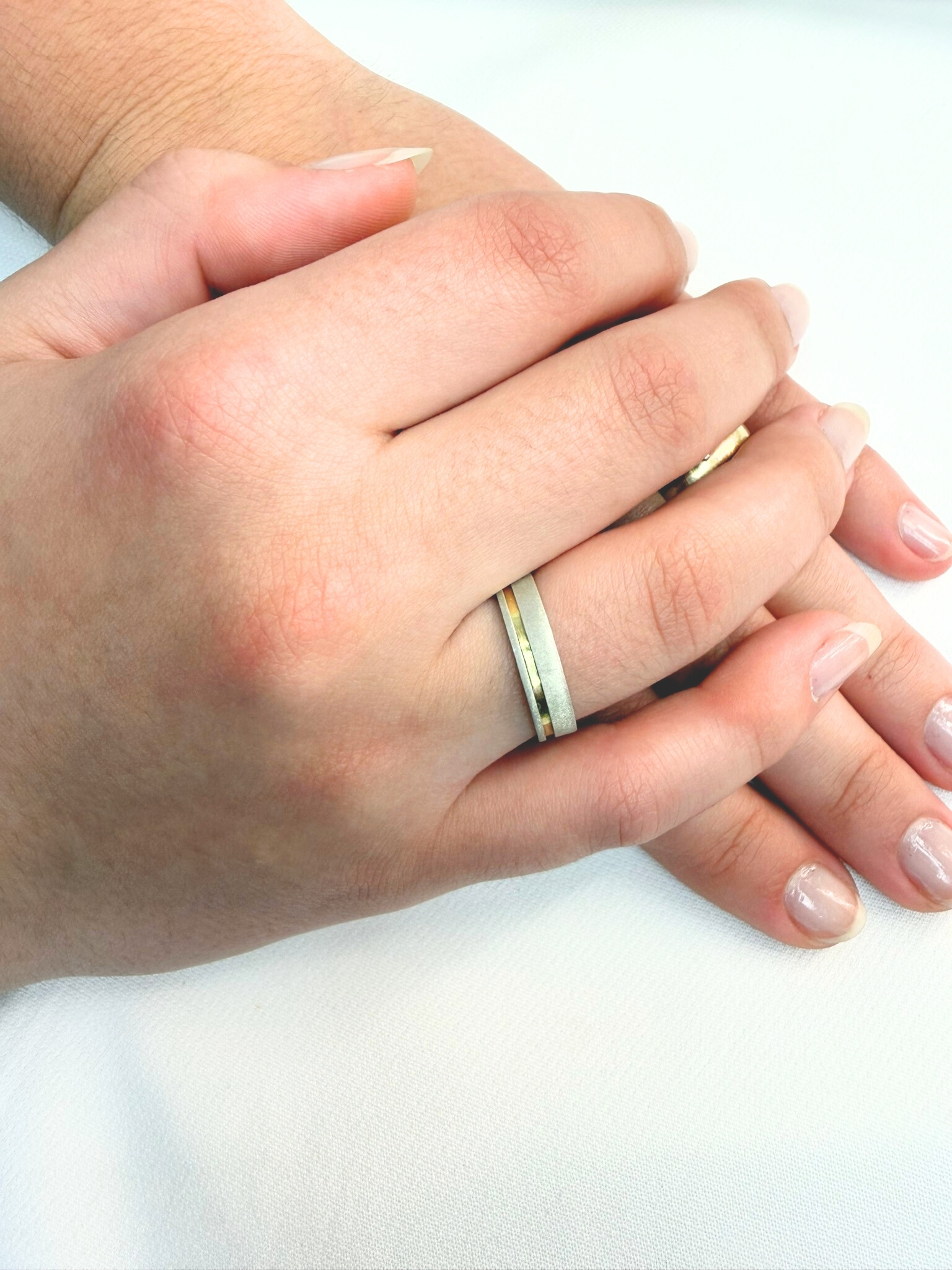 Par Aliança Prata com Filete em Ouro Cód 56